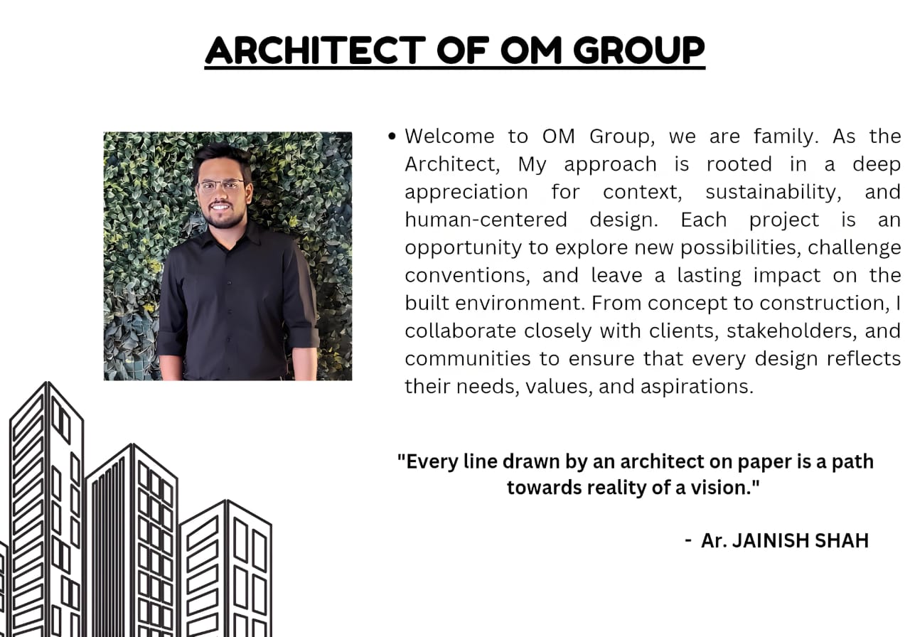 OM Group distinguished residential developer located in close proximity to DHOLERA SIR. Committed to excellence and innovation, OM Group specializes in crafting visionary living spaces that seamlessly blend modernity sustainability. With a rich portfolio of successful PROJECTS, the company has earned a stellar reputation for delivering quality homes that exceed expectations.